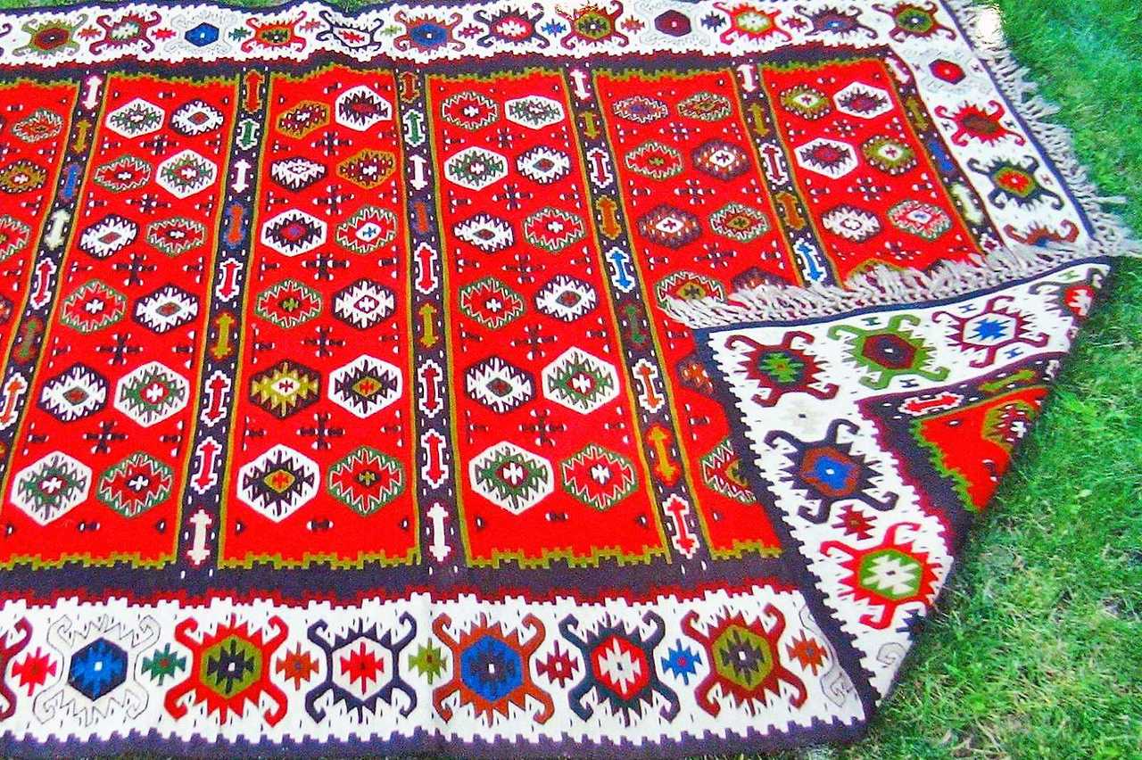 전통적인 평직 기술로 제조된 키림은 다양한 크기가 있지만,일반적으로 1 미터 x 2 미터 물건을 감고 포장하기 쉽습니다.