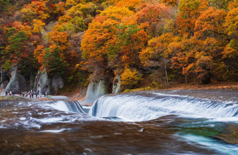 - 역동적인 폭포와 형형색색의 단풍이 조합된 장관으로 자연의 힘을 느낄 수 있습니다