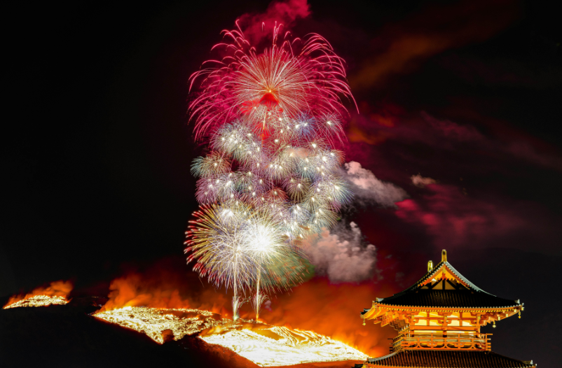 와카쿠사 야마야키 축제는 매년 1월 마지막 주 토요일에 열립니다. 이 축제의 하이라이트는 산을 불태우는 의식입니다. 이때, 와카쿠사 산의 기슭에서 대규모로 불꽃이 일며 산을 불태웁니다. 이 의식은 봄의 도래를 상징하며, 불꽃이 산을 휘감는 모습은 매우 장관을 이루고, 나라 전역에서 이 장면을 목격할 수 있습니다. 불꽃놀이와 함께 화려한 축제 분위기를 만끽할 수 있는 특별한 기회입니다.