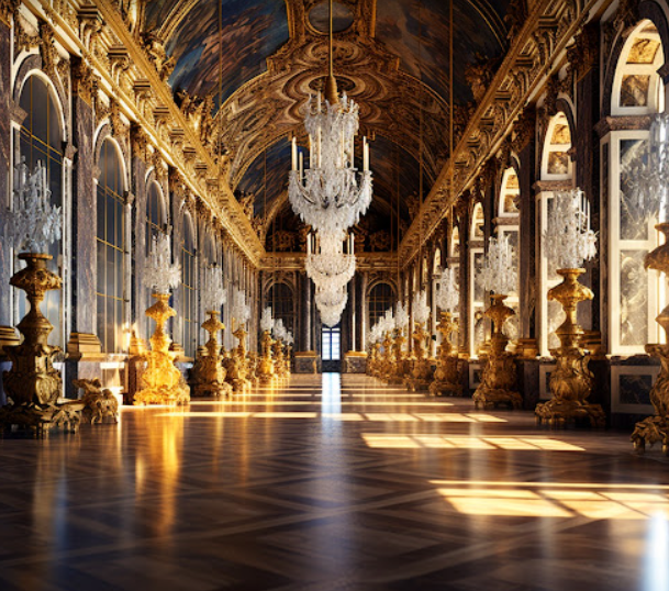 - 거울의 방(Hall of Mirrors): 357개의 거울과 금빛 샹들리에로 꾸며진 대형 홀. 제1차 세계대전 종전조약인 베르사유 조약이 이곳에서 체결되었습니다.