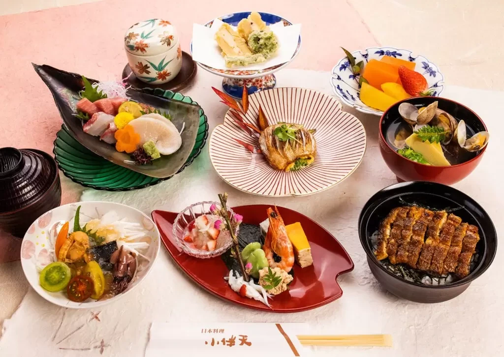 코반텐에서는 특별한 날에 어울리는 우아한 가이세키 요리는 물론, 전통 고급 일식의 맛을 경험하실 수 있습니다 . 메인 요리, 국, 반찬, 절임, 디저트로 구성된 세트 메뉴도 준비되어 있습니다.