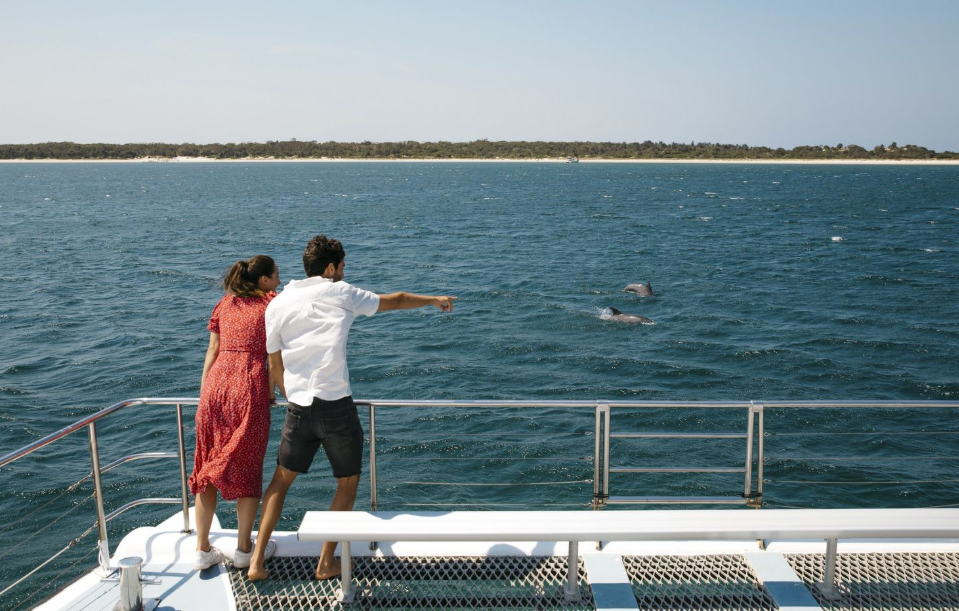 시드니 중심부에서 차로 북쪽으로 약 2.5시간 달린 곳에 위치한 포트 스티븐스는 아름다운 해변과 바다, 돌고래와 코알라 등의 야생 동물이 서식하는 대자연 지역입니다.그 중에서도 푸른 반짝이는 바다와 하얀 모래사장이 유명한 넬슨 베이는 인기 관광 명소입니다.돌핀 워칭에서는 야생 돌고래들이 마중해주는 모습을 선상에서 즐길 수 있습니다.운이 좋으면 귀중한 부모와 자식 돌고래가 헤엄치는 모습도 볼 수 있다고 합니다.