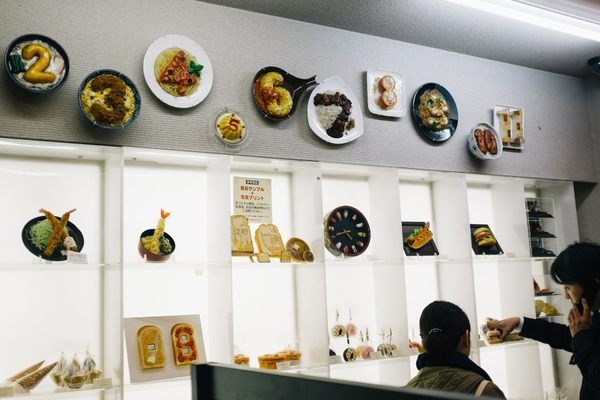도쿄의 '주방 거리'에는 정교한 음식 모형을 판매하는 여러 상점이 있습니다.