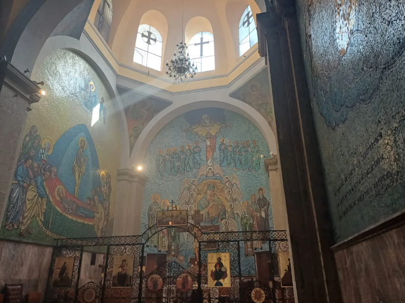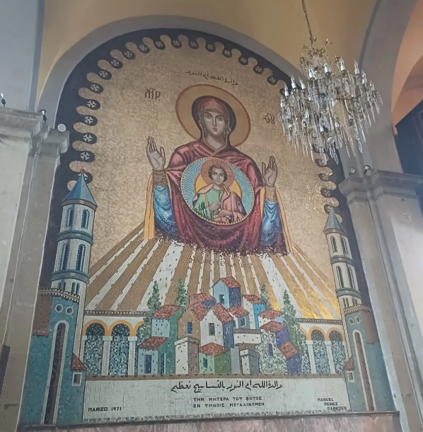 대성당의 내부를 들어서면 가장 먼저 눈에 띄는 것은 대형 모자이크 장식입니다. 이 모자이크는 아랍어와 그리스어로 된 텍스트와 성화들이 담겨 있으며, 비잔틴 교회 양식을 떠올리게 합니다. 이러한 이유로 많은 방문객들이 포르타 코엘리 대성당을 동방 정교회 소속으로 오해하곤 합니다.