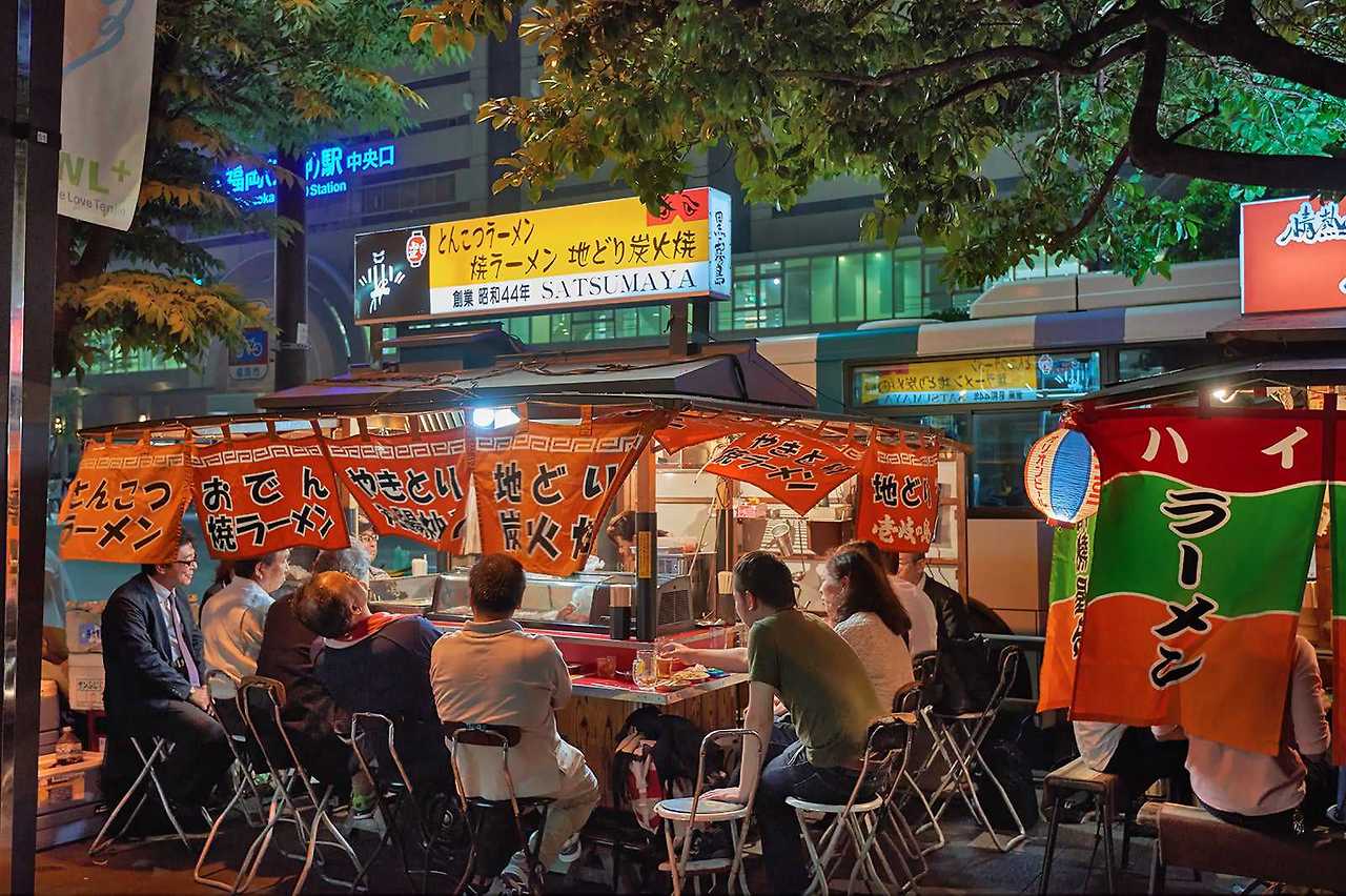 포장 마차 초보자라면, NPO 법인 이데아 규슈가 판매하고있는 「노점 티켓」의 이용이 추천. 컵, "하카타 아코 순정 포장마차 키야나기"에서는 알코올 1 잔에 모치모치 만두 하프나 라면 하프 등.그 밖에도 오키나와 메뉴가 충실한 포장마차나, 프렌치 포장마차, 튀긴 바삭바삭한 튀김 포장마차 등, 텐진・약원 에리어에는 개성적인 포장마차가 집결.